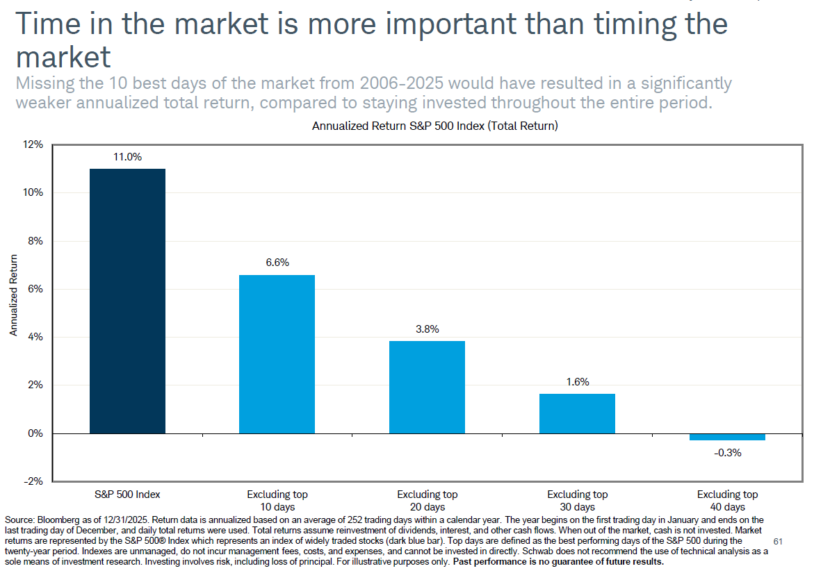 WE BELIEVE it is time in the market, not market timing, that leads to wealth accumulation.